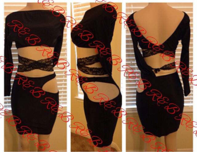 Two piece set Black lace wrap around straps Cut out detail Spandex/ Polyester Blend