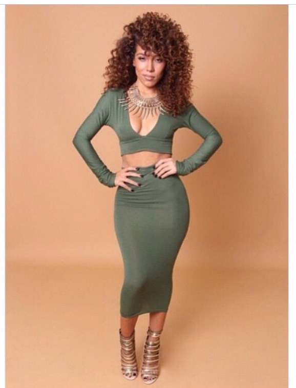 2 piece custom made set. This item can be made in any color. If you would like it to be made to your soecific measurements please email us your waist, hip and bust measurement, along with your height. Ot you can just get it in the standard small, medium, large.