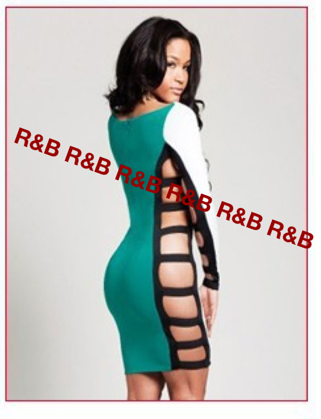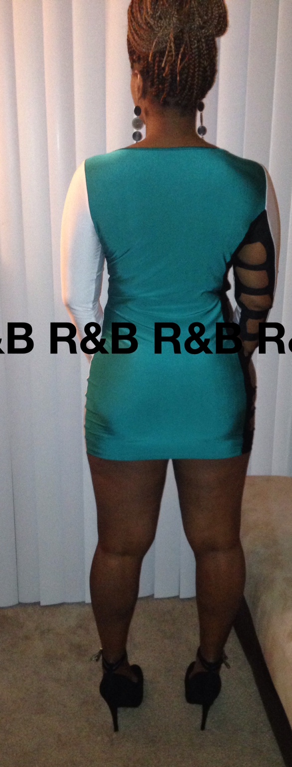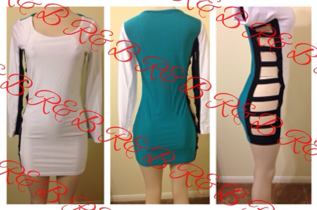 Spandex/ Polyester Blend Teal/White Form fitting dress Box cut out sides Custom Made