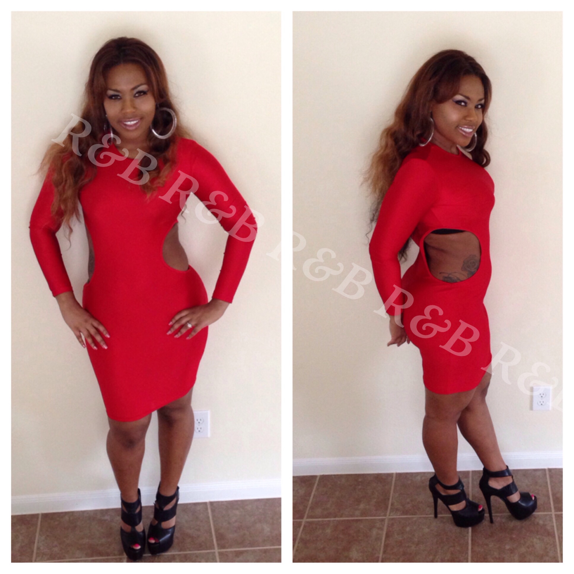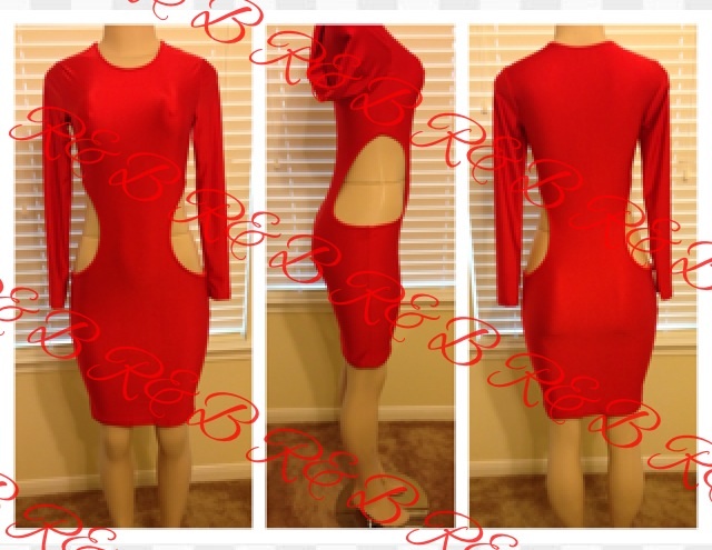 Spandex/ Polyester Blend, with cut out side/hips. This dress can be custom with or without slashes