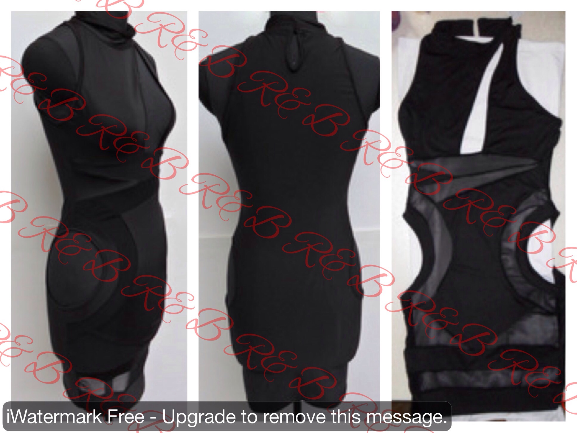 Polyester Blend Spandex. sheer & cut out detail, sleeveless, form fitting, solid back.